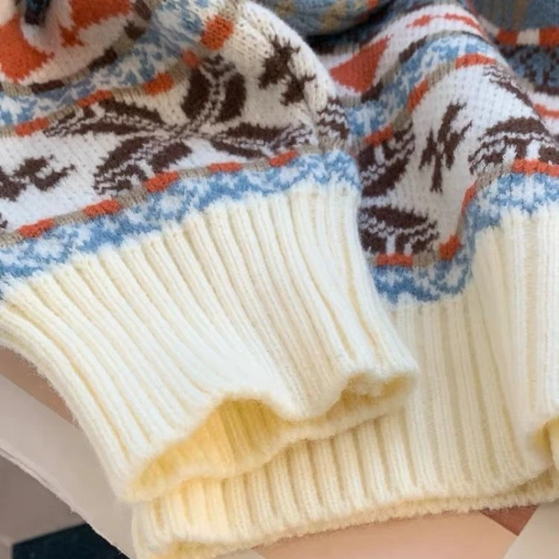 New Retro Christmas Outfit Men Deer Jacquard Sweater Autumn and Winter Loose Lazy Style Men and Women Sweater Men Clothing